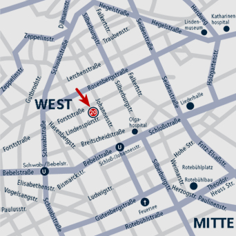 Unsere Räumlichkeiten befinden sich im Stuttgarter Westen, in einer ruhigen Seitenstraße, nur ein paar Minuten von der Stadtmitte entfernt. Mit dem Auto leicht zu finden und falls nötig, auch mit öffentlichen Verkehrsmitteln gut zu erreichen.